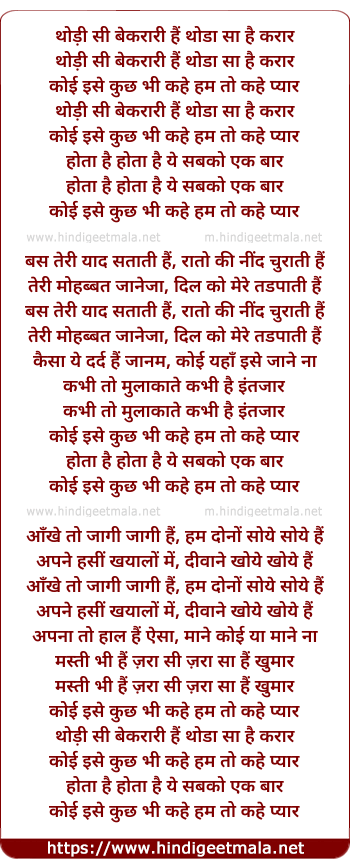 Lyrics of Thodi Si Beqarari - थोड़ी सी बेकरारी