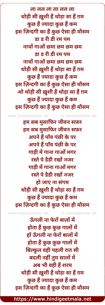 Lyrics of Thodi Si Khushi Hai Thoda Sa Hai Gham - थोड़ी सी ख़ुशी हैं थोड़ा सा हैं ग़म