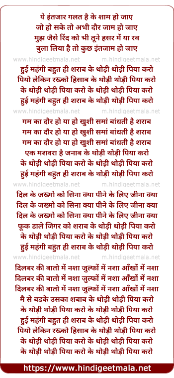 Lyrics of Thodi Thodi Piyaa Karo - ये इंतजार गलत है के शाम हो जाए