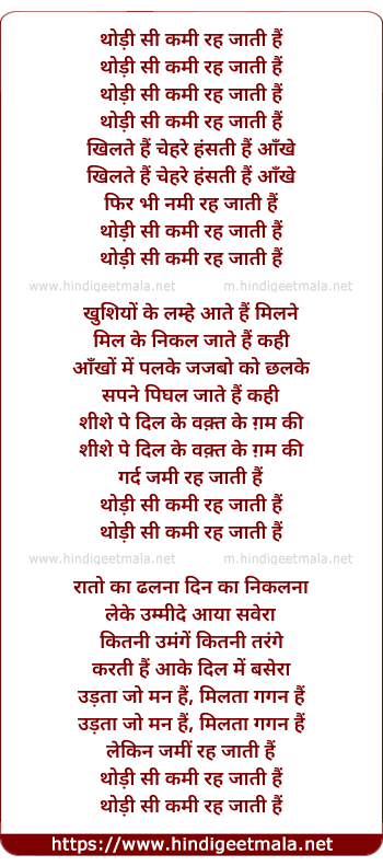 Lyrics of Thori Si Kami Reh Jati Hai - थोड़ी सी कमी रह जाती हैं