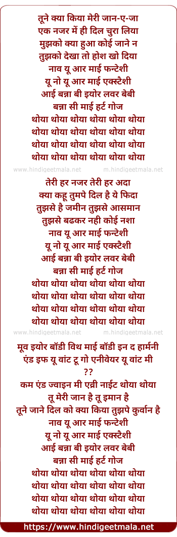 Lyrics of Thoya Thoya (Tune Kya Kiya) - थोया थोया (तूने क्या किया)