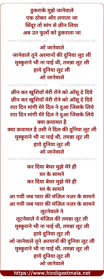 Lyrics of Thukaraa Ke Mujhe Jaanevaale, O Jaanevaale - ठुकराके मुझे जानेवाले
