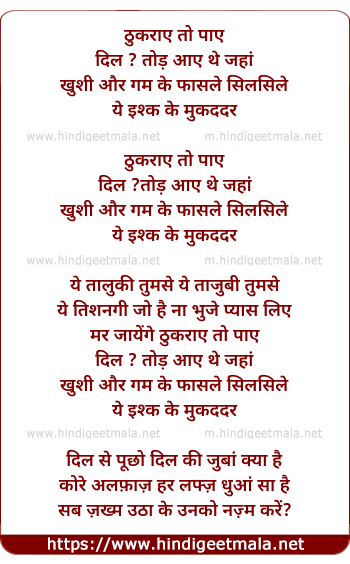 Lyrics of Thukraaye - ठुकराए तो पाए