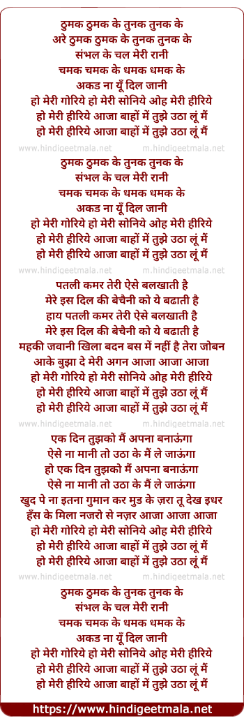 Lyrics of Thumak Thumak Ke Tunak Tunak Ke - ठुमक ठुमक के तुनक तुनक के