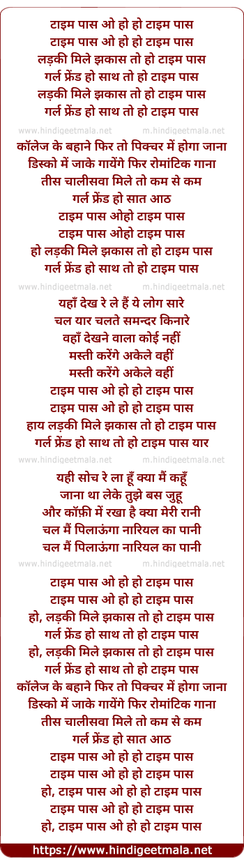 Lyrics of Time Pass - टाइम पास ओ हो हो टाइम पास