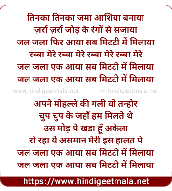 Lyrics of Tinka Tinka Jama Ki - तिनका तिनका जमा की