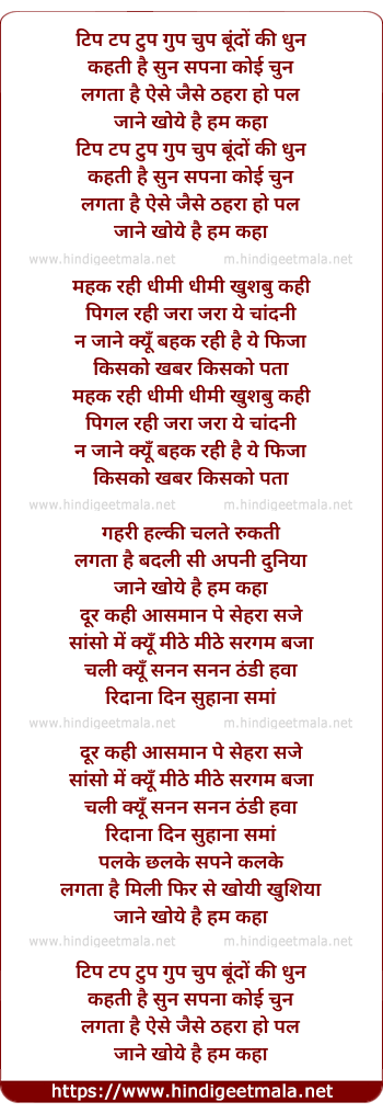 Lyrics of Tip Tap Tup Chup Gup Chup Bundo Ki Dhun - टिप टप टुप गुप चुप बूंदों की धुन