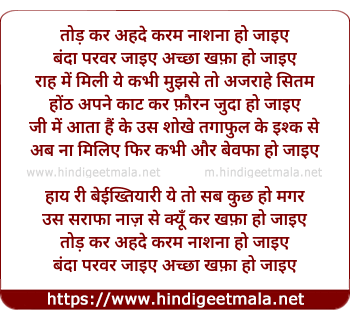 Lyrics of Todkar Ahde Karam Nasida Ho Jaye - तोड़ कर अहदे करम नाशना हो जाइए