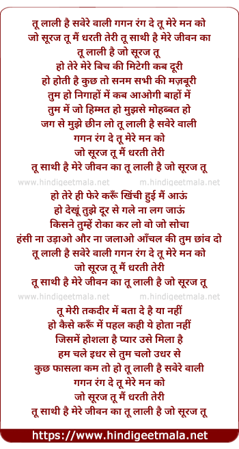 Lyrics of Tu Laali Hai Savere Wali - तू लाली है सवेरे वाली
