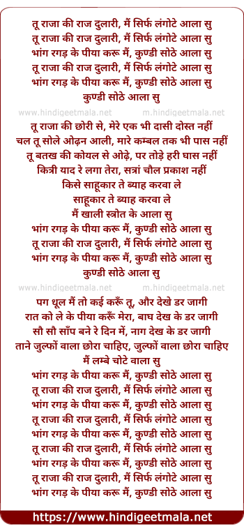 tu raja ki raaj dulari, mai sirf langote, aala su