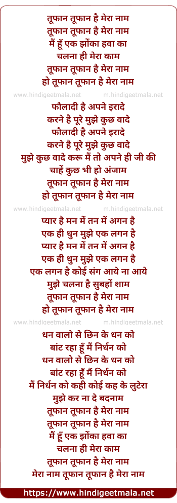 Lyrics of Toofaan Toofaan Hai Mera Naam - तूफान तूफान है मेरा नाम