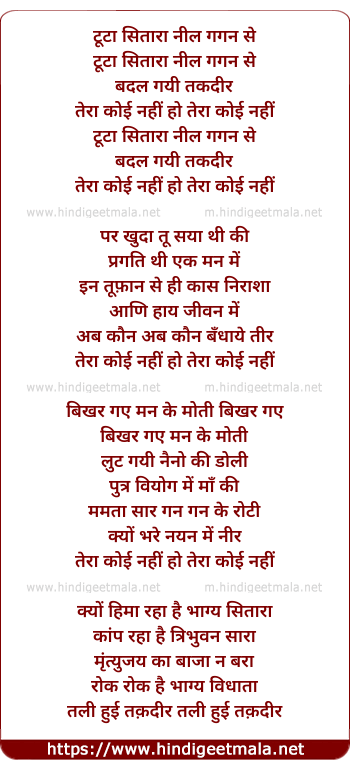 Lyrics of Toota Sitara Neel Gagan Se