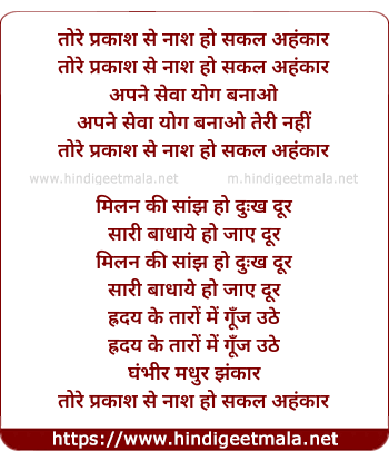 Lyrics of Tore Prakash Se Naash Ho Sakal Ahankar - तोरे प्रकाश से नाश हो सकल अहंकार