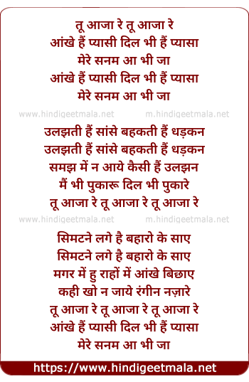 Lyrics of Tu Aaja Re Ankh Hai Pyasi