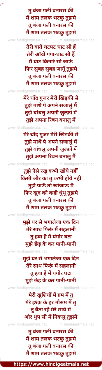 Lyrics of Tu Ban Ja Gali Benaras Ki - Iii - तु बंजा गली बनारस की