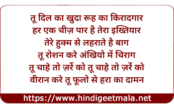 Lyrics of Tu Dil Ka Khuda Ruh Ka Kirdgar - तू दिल का खुदा रूह का किरादगार