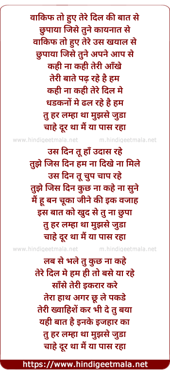 Lyrics of Tu Har Lamha Tha Mujhse Juda - तु हर लम्हा था मुझसे जुड़ा