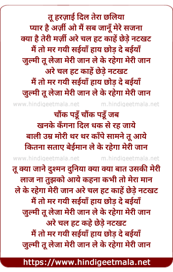 Lyrics of Tu Harjayi Dil Tera Chhaliya - तू हरज़ाई दिल तेरा छलिया