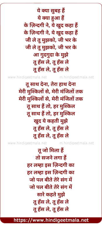 Lyrics of Tu Has Le (Female) - ये क्या सुबह हैं
