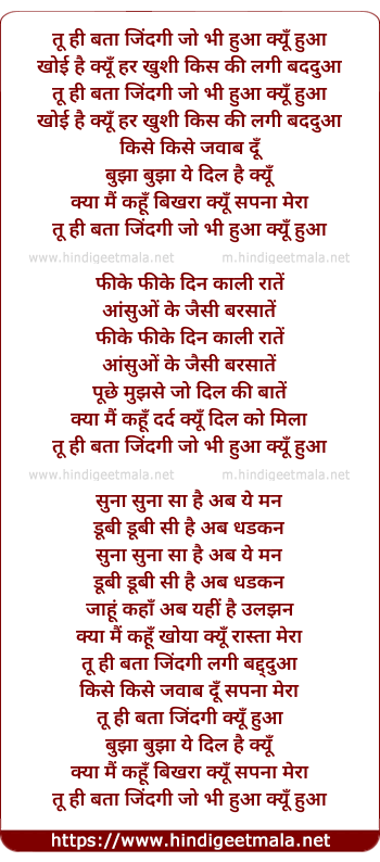 Lyrics of Tu Hi Bataa Zindagi - तू ही बता जिंदगी जो भी हुआ क्यूँ हुआ