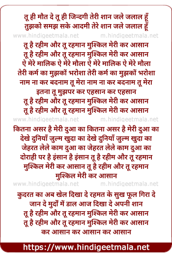 mushkil meri kar aasan tu hai rahim aur tu rahman