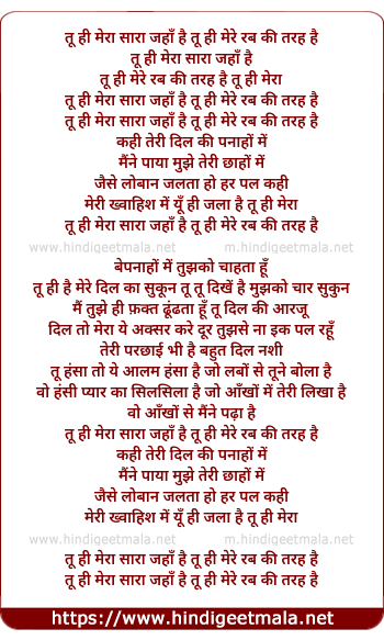 Lyrics of Tu Hi Mere Rab Ki Tarah Hai - तू ही मेरे रब की तरह है