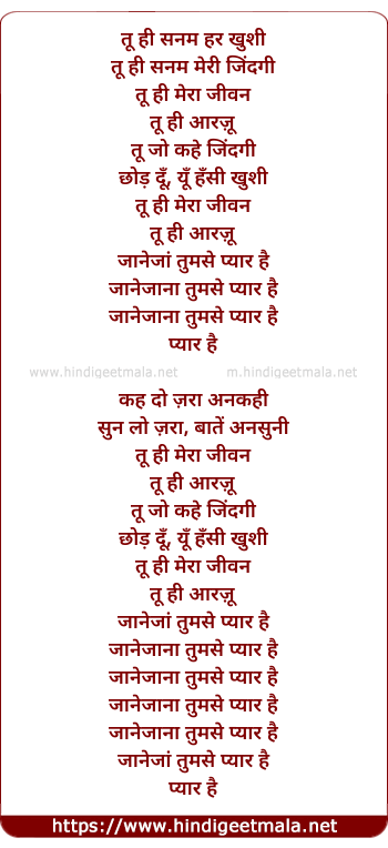 Lyrics of Tu Hi Sanam - तू ही सनम हर खुशी