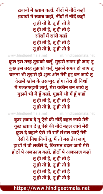 Lyrics of Tu Hi Toh Hai (M. A. Pass) - ख़्वाबों में ख़्वाब कहाँ, नींदों में नींदें कहाँ
