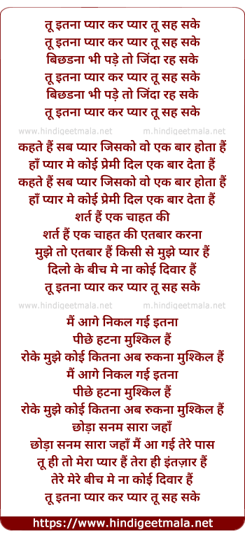 Lyrics of Tu Itna Pyar Karne Laga - तू इतना प्यार करने लगा