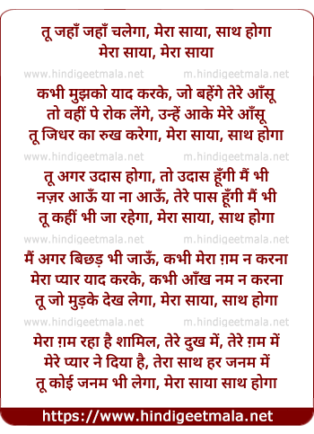 Lyrics of Tu Jaha Jaha Chalega, Mera Saya, Sath Hoga - तू जहाँ जहाँ चलेगा, मेरा साया, साथ होगा