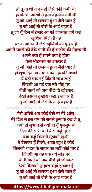 Tu Jo Aayee Toh Jaise - तू जो आई तो जैसे