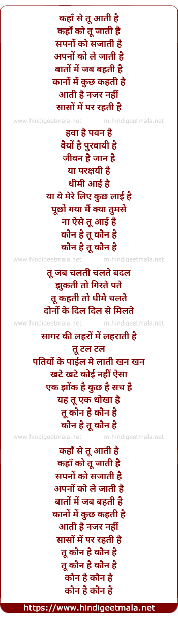 Lyrics of Tu Kaun Hai (Lucky Ali) - तू कौन है (लकी आली )