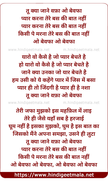 Lyrics of Tu Kya Jaane, Wafa, O Bewafa - तू क्या जाने वफ़ा ओ बेवफा