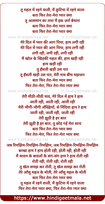 Lyrics of Tu Mahal Me Rahne Wali - तू महल में रहने वाली