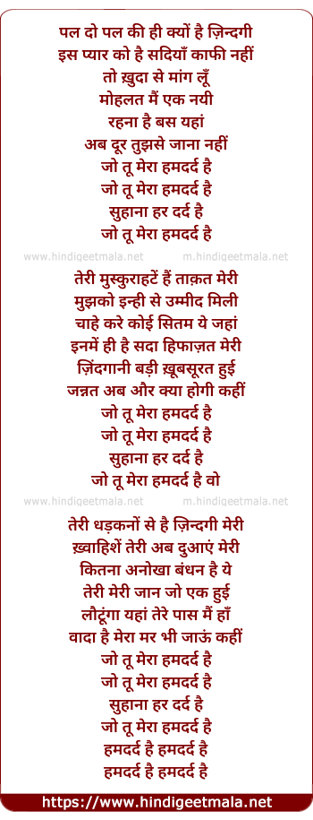 Lyrics of Tu Mera Humdard Hai - तू मेरा हमदर्द है