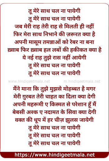 Lyrics of Tu Mere Saath Chal Na Paaegi Mukesh Gazal - तू मेरे साथ चल ना पायेगी