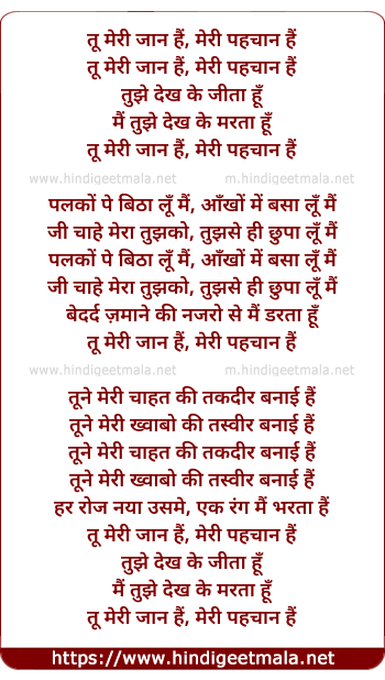 Lyrics of Tu Meri Jaan Hai Meri Pahchan Hai - तू मेरी जान हैं मेरी पहचान हैं