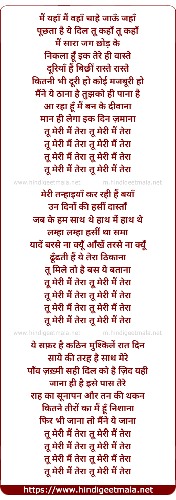 Lyrics of Tu Meri Main Tera - तू मेरी मैं तेरा