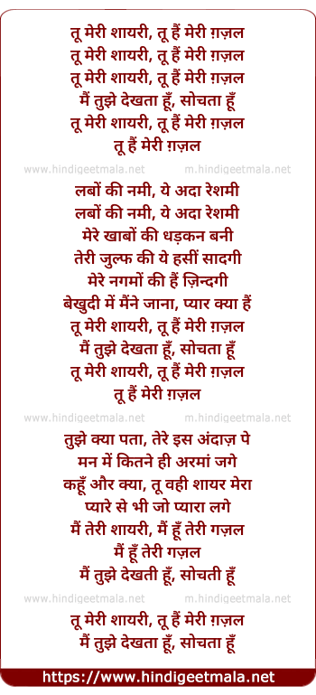 Lyrics of Tu Meri Shairi - तू मेरी शायरी