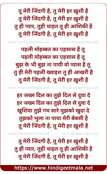 Lyrics of Tu Meri Zindagi Hai, Tu Meri Har Khushi Hai - तू मेरी जिंदगी है, तू मेरी हर ख़ुशी है