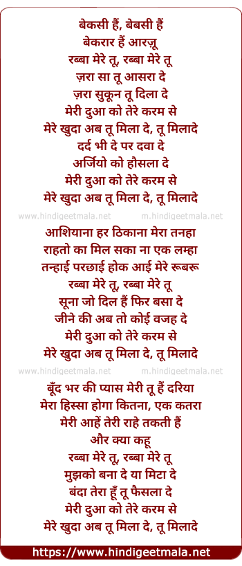 meri duaa ko tere karam se mere khuda ab tu mila de