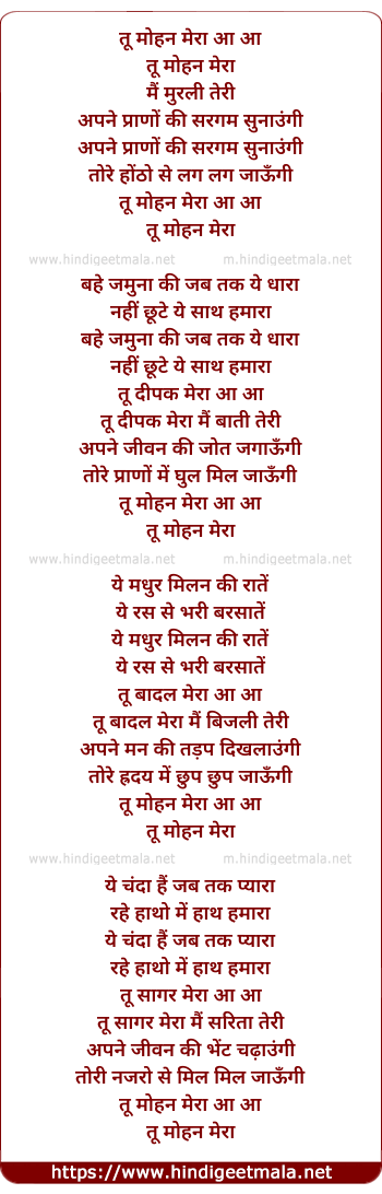 Lyrics of Tu Mohan Mera Main Murali Teri - तू मोहन मेरा मैं मुरली तेरी
