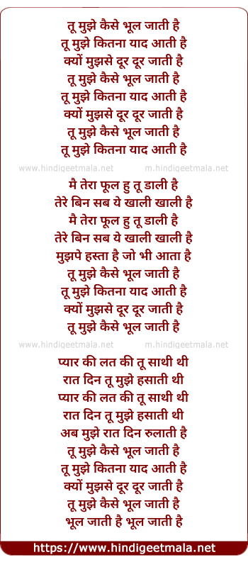 Lyrics of Tu Mujhe Kaise Bhul Jati Hai - तू मुझे कैसे भूल जाती है