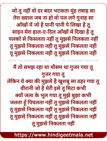 Lyrics of Tu Mujhse Nikalta Nahi - तू मुझसे निकलता नहीं