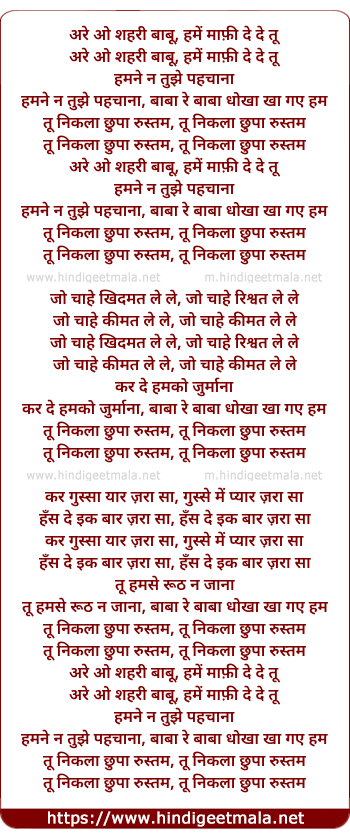 Lyrics of Tu Nikala Chhupa Rustam - तू निकला छुपा रुस्तम