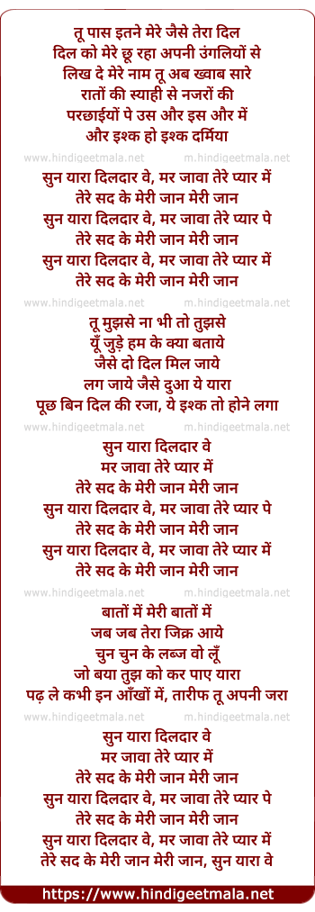 sun yaara dildaar ve, mar jaawa tere pyar pe
