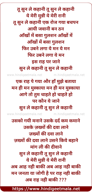 Poetic Translation - Lyrics of Tu Sun Le Kahani - तू सुन ले कहानी