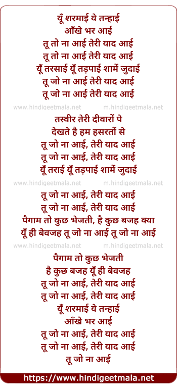 Lyrics of Tu Toh Na Aayi - तू तो ना आई