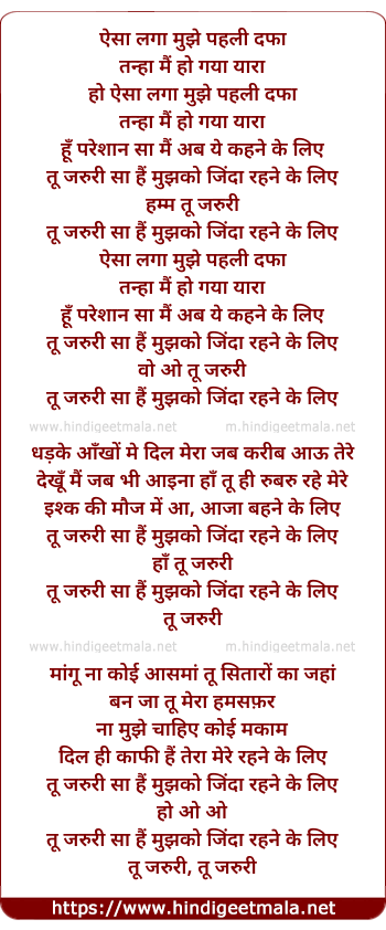 Lyrics of Tu Zaroori (Male) - तू जरुरी(मेल)