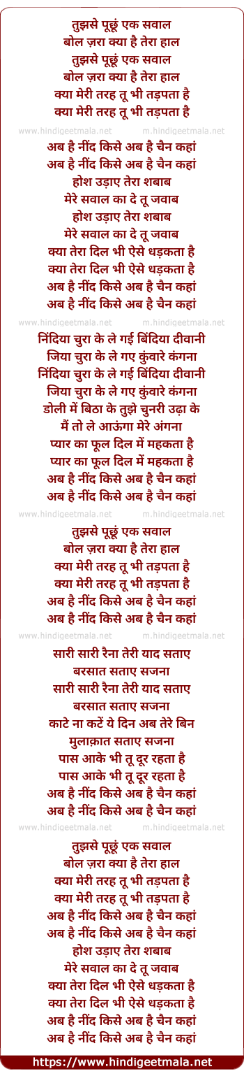 Lyrics of Tujhase Puchhun Ek Savaal - तुझसे पूछूं एक सवाल